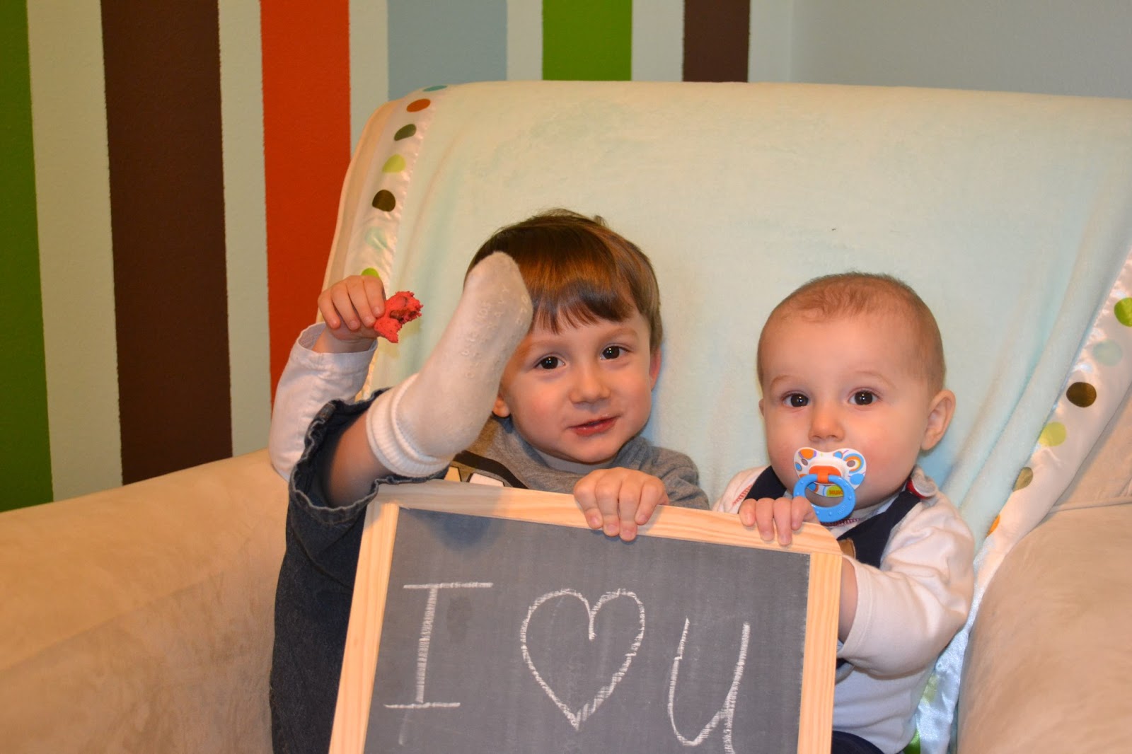 These were taken after day care. I love these boys. We had dinner at home and went to bed like usually around 9. My parents did come over and surprise the boys with a few gifts and it was fun to hang out with them for a little bit. Trey and I didn't get each other anything but on Saturday we went out shooting with a few friends and then Trey and I went to dinner. It was great to have so adult/alone time. Happy Valentines Day!!